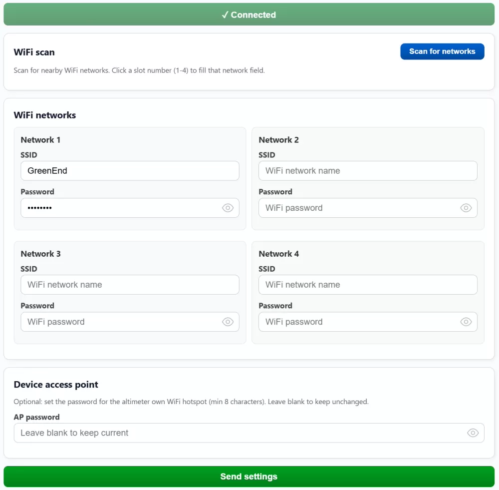 Stap 4: U kunt nu uw altimeterinstellingen en WiFi-netwerken configureren onder de WiFi-menuoptie.