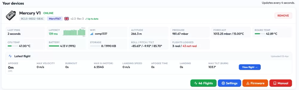De beste manier om uw Mercury altimeter te beheren is via de website van Altimeter Cloud.
